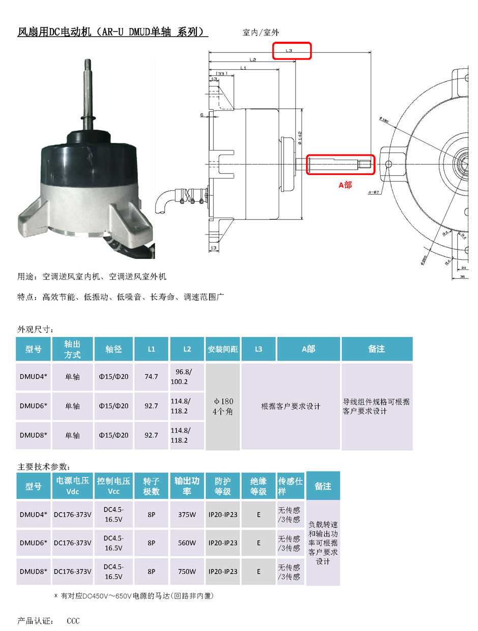 风扇用DC电机-AR-U DMUD单轴